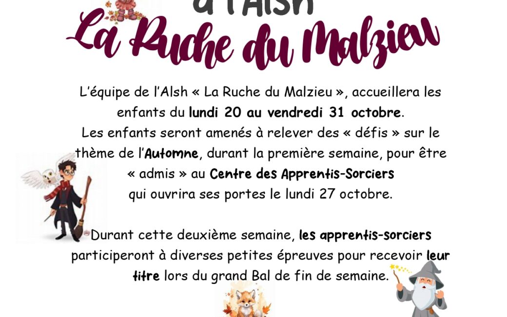 Accueil de loisirs 8 octobre 202514 octobre 2025 Le programme et la fiche de réservation sont disponibles dans la rubrique VIVRE AU MALZIEU – PETITE ENFANCE